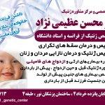 دکتر عظیمی نژاد دانشیار ژنتیک دانشگاه علوم پزشکی است که تحصیلات پزشکی خود را در دانشگاه مشهد و دوره دکترای تخصصی را در دانشگاه لورن نانسی فرانسه گذرانده است. علاوه بر تسلط در مشاوره تخصصی ژنتیک در بیماریه ای ارثی و ناهنجاری های همراه تولد( مادرزادی) ، تجربیات بیشتر ایشان بر مشاوره ژنتیک در تشخیص ناباروری و سقط های مکرر متمرکز است.